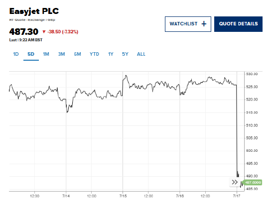 这家低成本航空公司表示,法国空中交通管制人员的罢工行动以及燃油价格上涨削弱了其季度业绩,受此影响,易捷航空股价开盘下跌逾 7%。