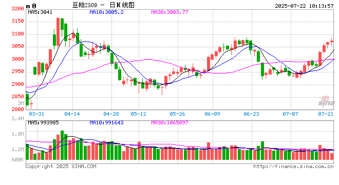 周一,CBOT大豆下跌,因天气预报显示每个中西部将迎来降雨,将缓解高温对农作物的影响。与此同时,交易商担心贸易谈判结果。按照此前言论,美国设定8月1日为关税最后期限。欧盟外交官表示,随着关税谈判前景黯淡,欧盟正在探索一系列更广泛的可能反制美国的措施。美豆检验36.5万吨,符合市场预期。盘后作物报告显示,美豆优良率68%,低于市场预期的71%,及上周70%,持平去年同期的68%。国内方面,蛋白粕继续上涨,菜粕强于豆粕。现货跟随外盘上涨,下游处于担忧,补库意愿增加。同时由于大豆压榨处于高位,豆粕库存攀升至100万吨以上,现货供应宽松,压制现货价格。油厂可售合同有限,部分工厂选择暂停现货报价或采取挺价策略。市场密切关注中美关系进展,并且关注四季度油料采购情况。操作上,盘面震荡偏强思路,豆粕91、15正套持有。