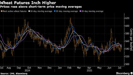 在截至7月20日当周,美国春小麦长势状况变差,促使交易员平掉部分空头头寸。小麦价格升破10日、20日和30日移动均线,这是一个通常会激励买盘的技术信号。