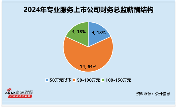 分行业来看,社会服务-专业服务行业(申万二级行业)上市公司财务总监CFO 2024年薪酬平均数约为73.14万元。其中薪酬最高为安邦护卫诸葛斌,2024年薪酬高达143.75万元;薪酬最低为实朴检测周慧清,2024年薪酬为21.61万元(统计剔除了未完整领取2024年全年薪酬的财务总监CFO)。从整体薪酬分布来看,薪酬在50-100万元人数最多,共计14人,占比64%。
