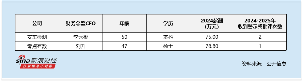 从违规情况来看,行业内共有2名财务总监CFO在2024-2025年收到过警示函、公开通报或内部通报的情况。
