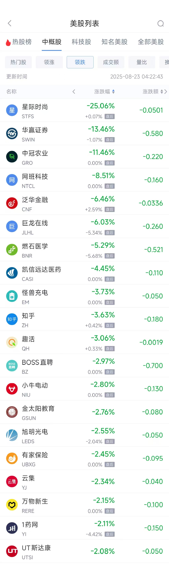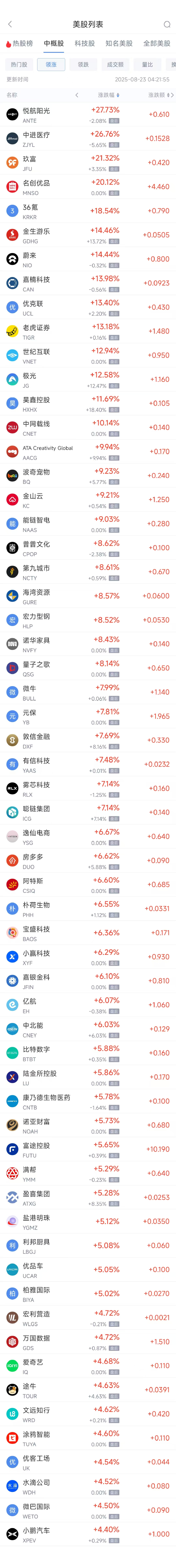 (截图来自新浪财经APP 行情-美股-中概股热门板块)下载新浪财经APP