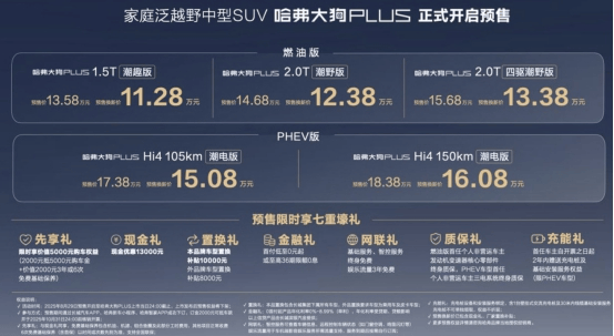 哈弗大狗PLUS预售价11.28万起,搭载哈弗Hi4技术,定位家庭泛越野中型SUV