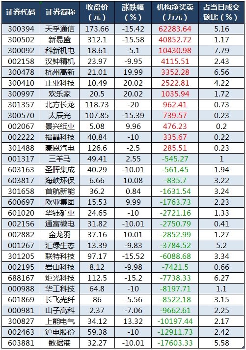 龙虎榜机构净买入12股 天孚通信(300394)居首