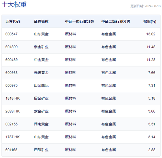 该指数的权重集中于前十大成分股,占比合计65.89%;指数主要投资于黄金产业下的龙头个股,成分股票代表性较强;从行业分布上来看,中证沪深港黄金产业股票指数以有色金属为主,覆盖了黄金的生产、制作、销售等全流程,在行业集中的同时,不失产业链上中下游的完整性;中证沪深港黄金产业股票指数的净利润增速更为稳健。