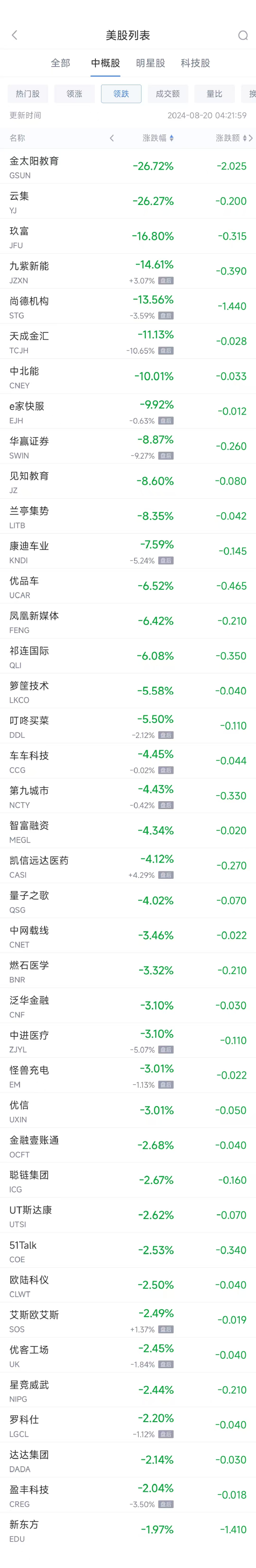 (截图来自新浪财经APP 行情-美股-中概股热门板块)下载新浪财经APP