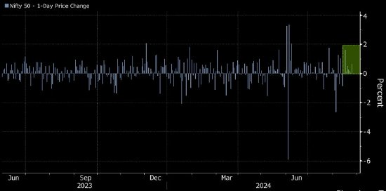 印度 Nifty 50指数有望连续第八天上涨,或将创下2023年7月以来最长连续上涨。 Nifty 50指数上涨0.6%,至24,974.15点;Sensex指数亦涨约0.6%。 MSCI亚太指数上涨0.3%。