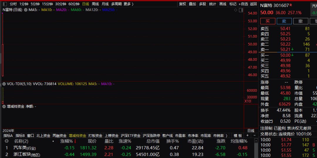 今天A股市场有一只新股富特科技上市,上午盘中该股涨幅一度超过280%。