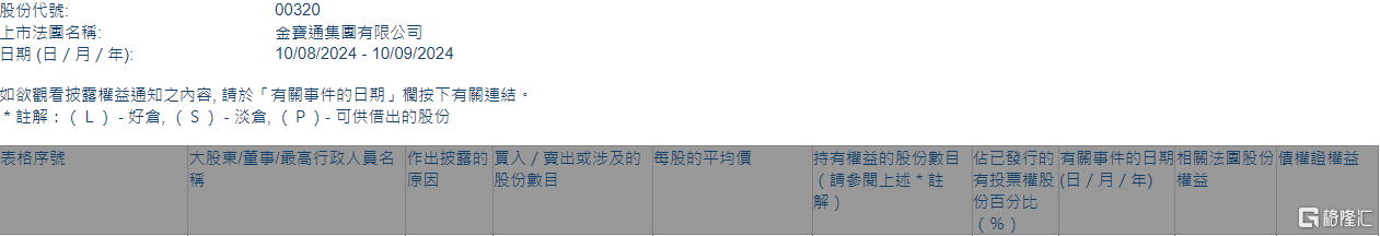 金宝通(00320.HK)获YEOMAN 3-RIGHTS VALUE ASIA FUND VCC增持24.4万股