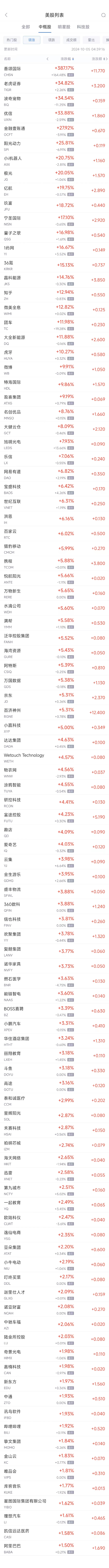 领涨中概股列表: