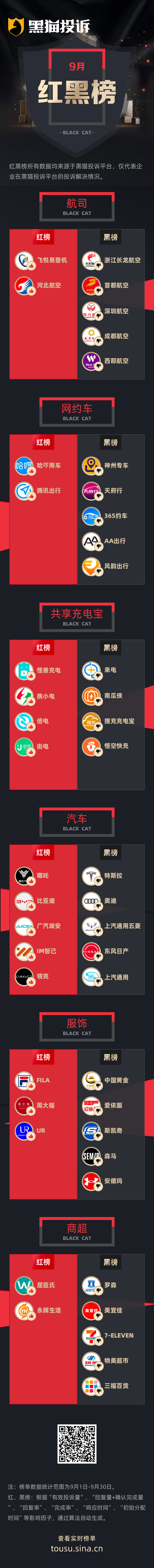 黑猫投诉9月行业红黑榜单