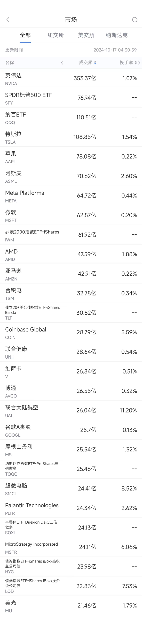 10月16日美股成交额前20:阿斯麦连续第二日重挫,跌破700美元关口