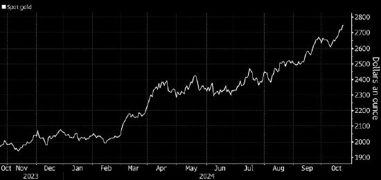 金价创下历史新高,因为随着投资者监测即将到来的美国选举和中东冲突,金价获得了持续的避险需求。周三,金价小幅上涨至2750.34美元,比周二的峰值高出约1美元,地缘政治风险占据了中心舞台,交易员们关注的是激烈的美国总统竞选,以及对以色列和伊朗之间的冲突可能升级为更广泛战争的担忧。看涨情绪也蔓延到更广泛的贵金属领域,银价接近每盎司35美元,上一次达到这一水平是在2012年。投资者纷纷转向安全资产,帮助抵消了近日美国政府债券抛售的压力。交易员们押注美联储的宽松步伐将放缓。渣打银行分析师苏基·库珀(Suki Cooper)预计黄金未来几周将有进一步的上行风险。该银行预计,第四季度黄金平均每盎司2800美元,2025年前三个月的平均价格为2900美元。