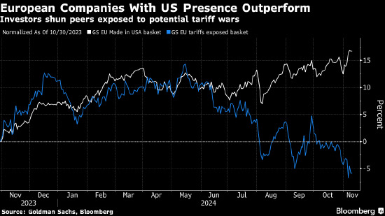 “我们已经看到自大选以来欧洲市场的表现明显逊于美国市场,”DWS Investment GmbH欧洲股票联席主管Marcus Poppe表示。“欧洲市场最大的风险是向进出口贸易商征收税收讨论再次浮现,尤其是对德国市场。我认为这是悬在市场上空的达摩克利斯之剑。”