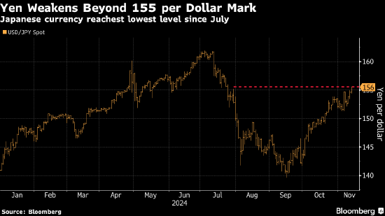 纽约汇市周三美元上涨,摆脱了10月CPI符合预期之后交易员加大美联储12月降息押注而引起的短债收益率下跌的影响。日元自7月以来首次跌破155日元兑1美元大关,引发了对日本当局可能加大力度遏制跌势的猜测。