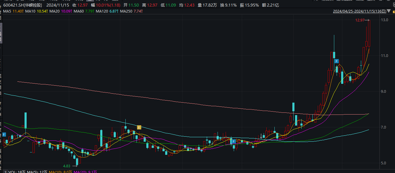 值得注意的是,停牌前夕华嵘控股股价异动,或涉嫌内幕信息泄露。11月13日和15日,公司股价涨停,近三个交易日累计涨幅达24.11%。截至15日收盘,华嵘控股报12.97元/股,市值25.37亿元。