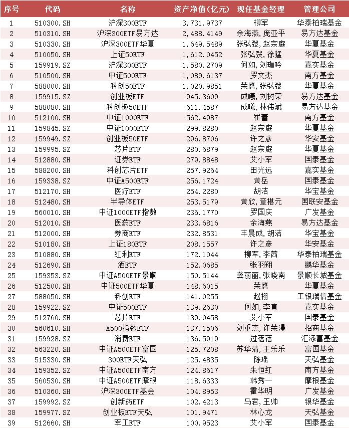 华泰柏瑞沪深300ETF资产规模3731亿!中央汇金Q3增持五大宽基ETF 百亿以上ETF有39只!(名单)