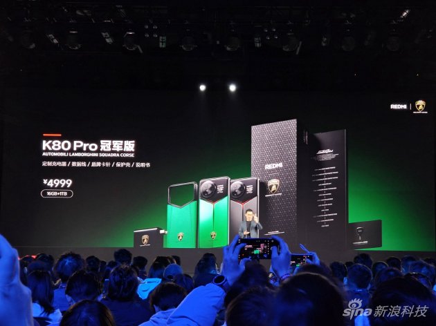 REDMI K80 Pro 冠军版兰博基尼汽车 SQUADRA CORSE 提供 12GB + 256GB 内存,售价 4999 元。