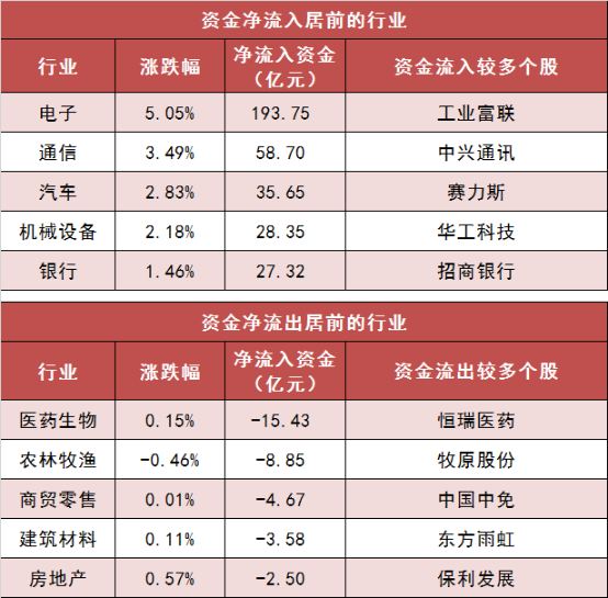 3.电子等多个行业实现净流入