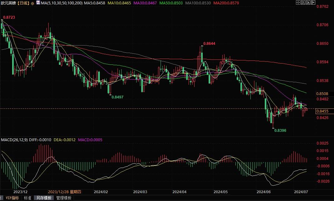 北京时间7月10日9:37,欧元兑美元报0.8454/56