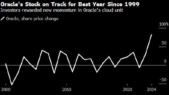 甲骨文股价周一收盘报190.45美元,盘后交易下跌约7%。该公司股价今年以来大涨81%。
