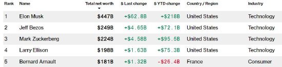 受此推动,特斯拉CEO埃隆·马斯克的身价一夜之间暴增了628亿美元,达到4470亿美元,成为地球上首位净资产超过4000亿美元的超级富豪。