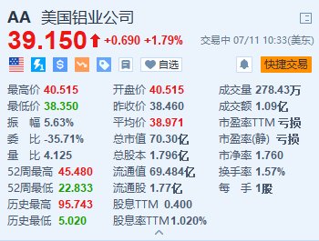 美股异动|美国铝业一度涨超5% Q2初步业绩数据优于市场预期