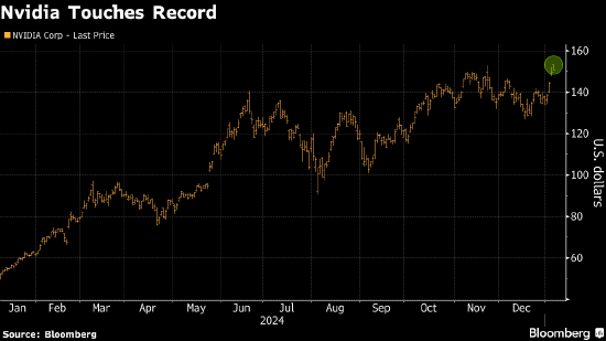 英伟达股价周二创下11月以来的首个盘中纪录,得益于投资者对这个AI芯片市场领军者的兴趣持续强劲。