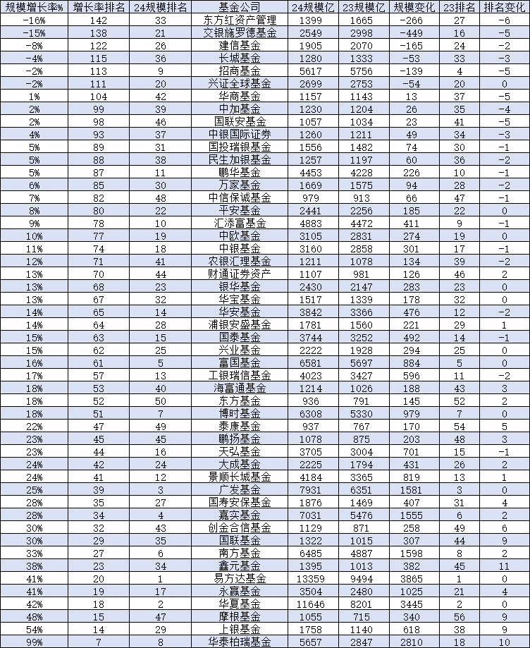 中加基金规模一年增长26亿元,公司排名从35名降至39名,下降4位