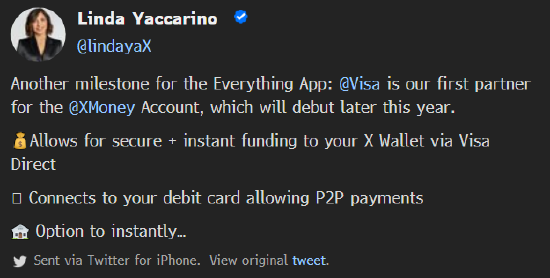 3、X选择Visa作为迈向“万能应用”目标的首个数字钱包合作伙伴