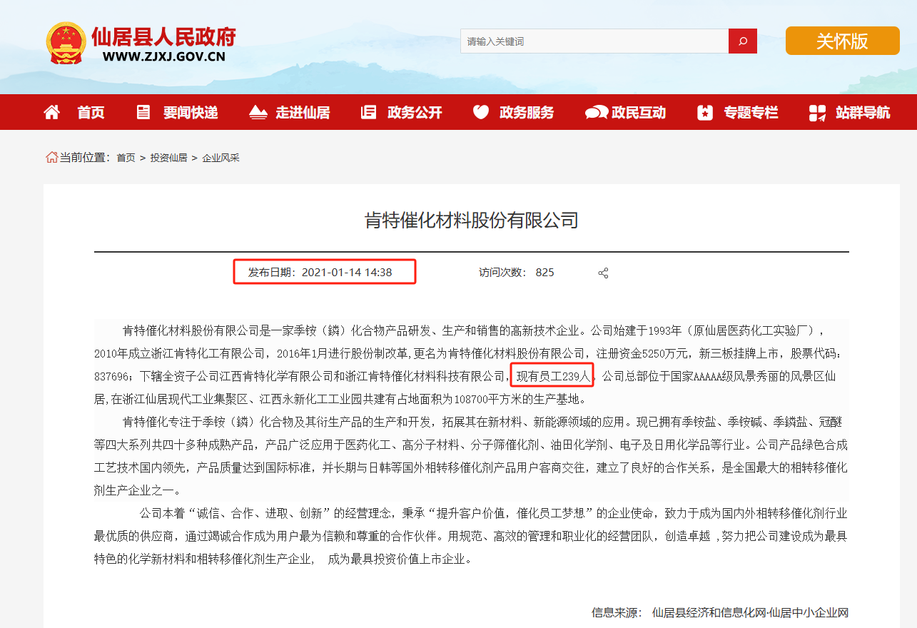 而招股书显示,2020年至2022年各期,其员工总数分别为442人、498人、550人,其中截至2022年12月31日,拥有研发人员50人,占员工总数的比例为9.09%。且据仙居县政府网2021年1月14日信息,彼时员工总数为239人。该数据与招股书披露2020年末的总人数相差近200人。