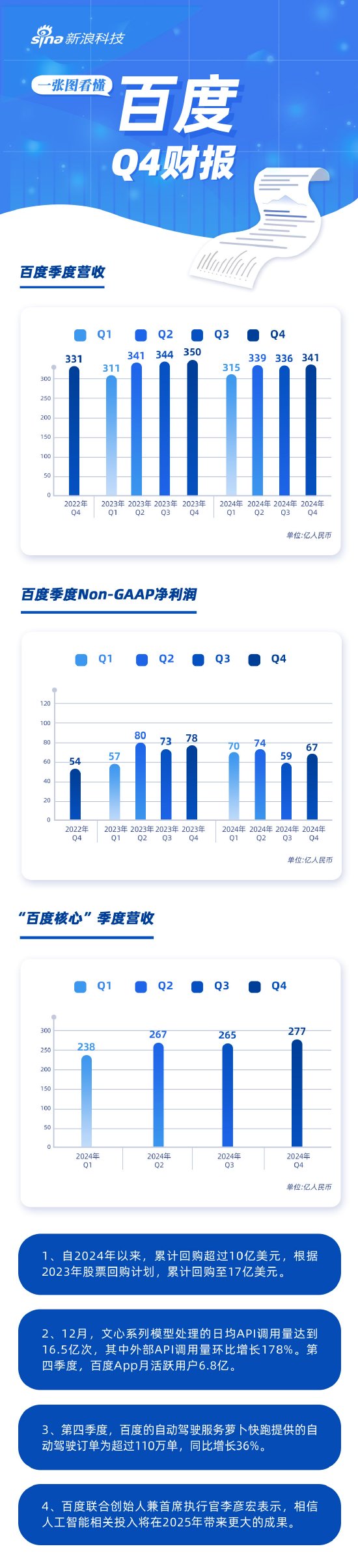 相关新闻:百度第四季度营收341亿元 经调净利润67亿元