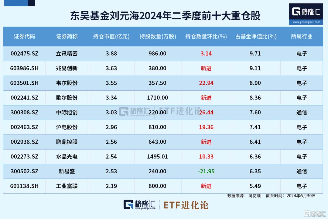 刘元海业绩稳住了!二季度加大了与AI相关的电子半导体配置,前十大重仓股变动较大