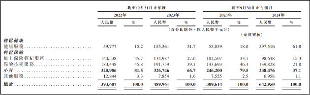 招股书显示,2022年、2023年以及2023年、2024年前三季度,公司所销售的保险产品的年化 保费总额分别为13亿元、12亿元、10亿元及8亿元;同期公司交付的保单数量分别为2百万份、1.5百万份、1.2百万份及1百万份,保单数量及保费金额均逐年走低。