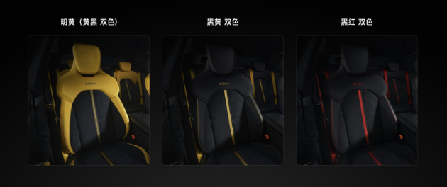 还有多种可选配置,5种外饰颜色,闪电黄、珍珠白免费,其余三款颜色选装9000元!3款内饰颜色,明黄色免费,其余两款黑/黄双色、黑/红双色选装3000元!