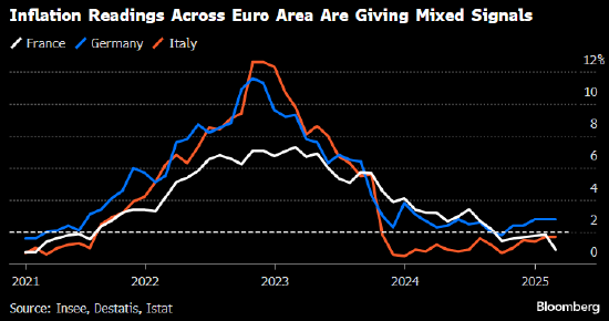 此前公布的数据显示,法国通胀率回落至四年来最低水平,而意大利物价涨幅出人意料地保持稳定。周四公布的数据显示,西班牙通胀率维持高位,报2.9%,而一项核心指标放缓。