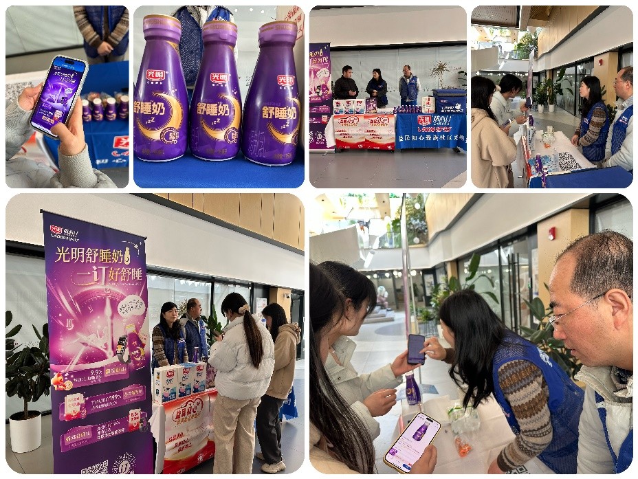 为了把“一夜好眠”送到消费者身边,光明乳业旗下光明随心订在“世界睡眠日”前后,走进高科技园区,举办“益民初心,爱满园区”专场活动,用“三重专属福利” “万人数智舒睡体验计划”等,让更多消费者亲身体验光明舒睡奶的特点,获得更好的睡眠体验。