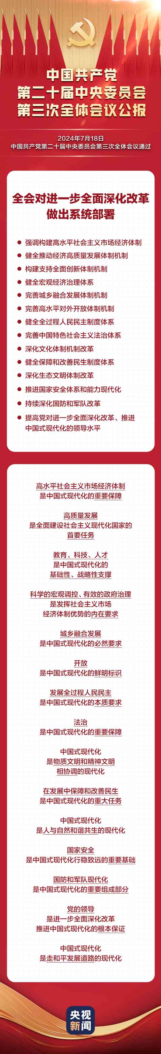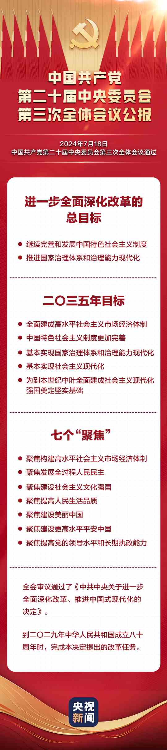 中国共产党第二十届中央委员会第三次全体会议,于2024年7月15日至18日在北京举行。