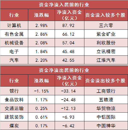 两市主力资金净流入近150亿元 计算机等行业实现净流入