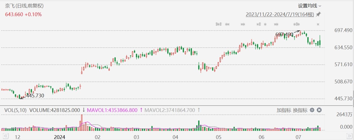 盘初一度涨超5%的奈飞(NFLX.US)目前转跌,报643美元。