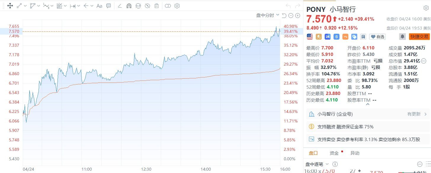 美股异动|小马智行两日累涨近82%,高盛称小马智行第七代Robotaxi成本大降